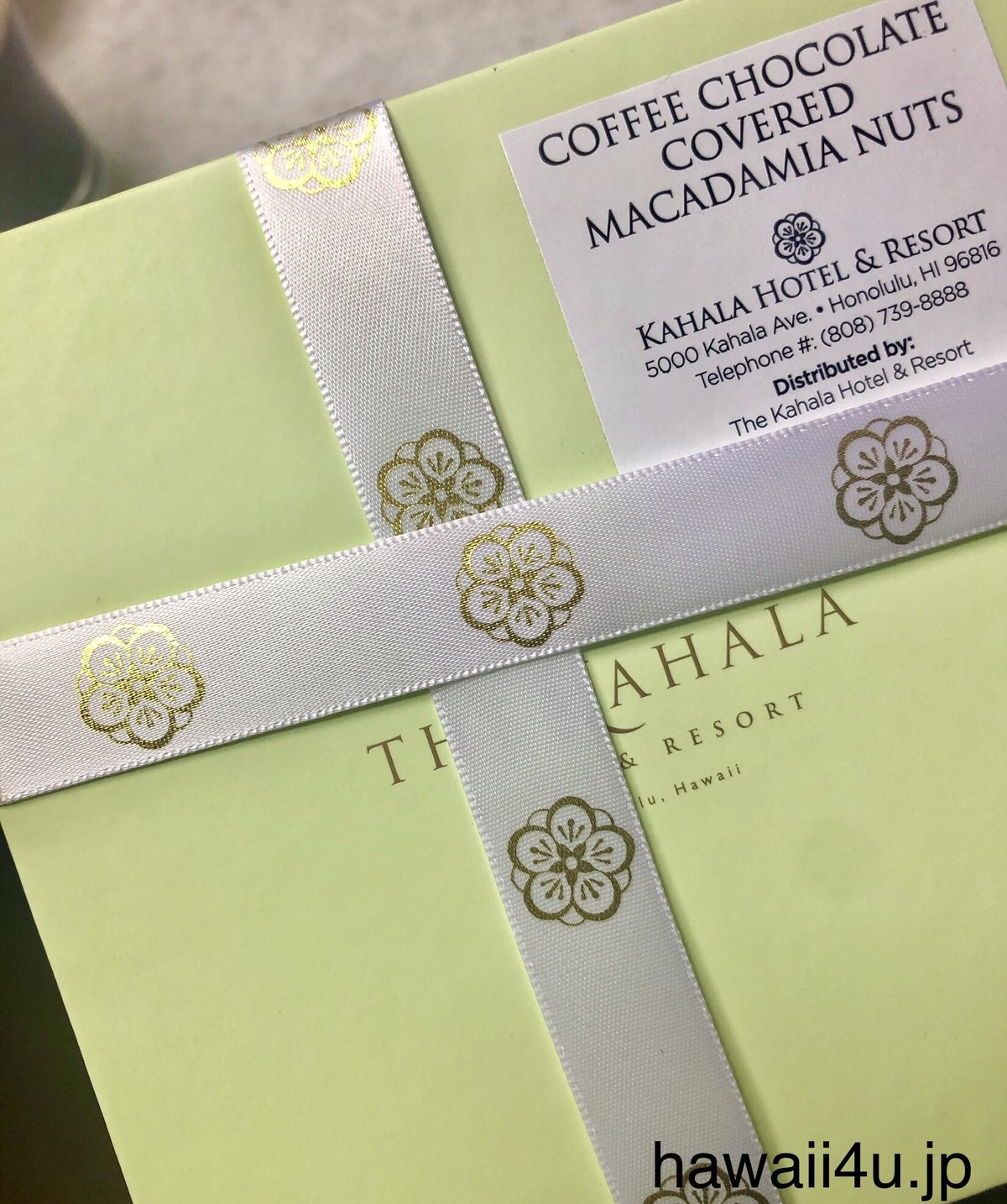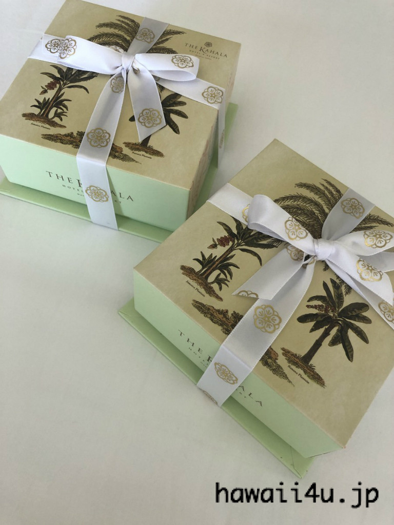 ラッピングはレギュラーと同じく、カハラホテルオリジナルのヤシの木ボックス