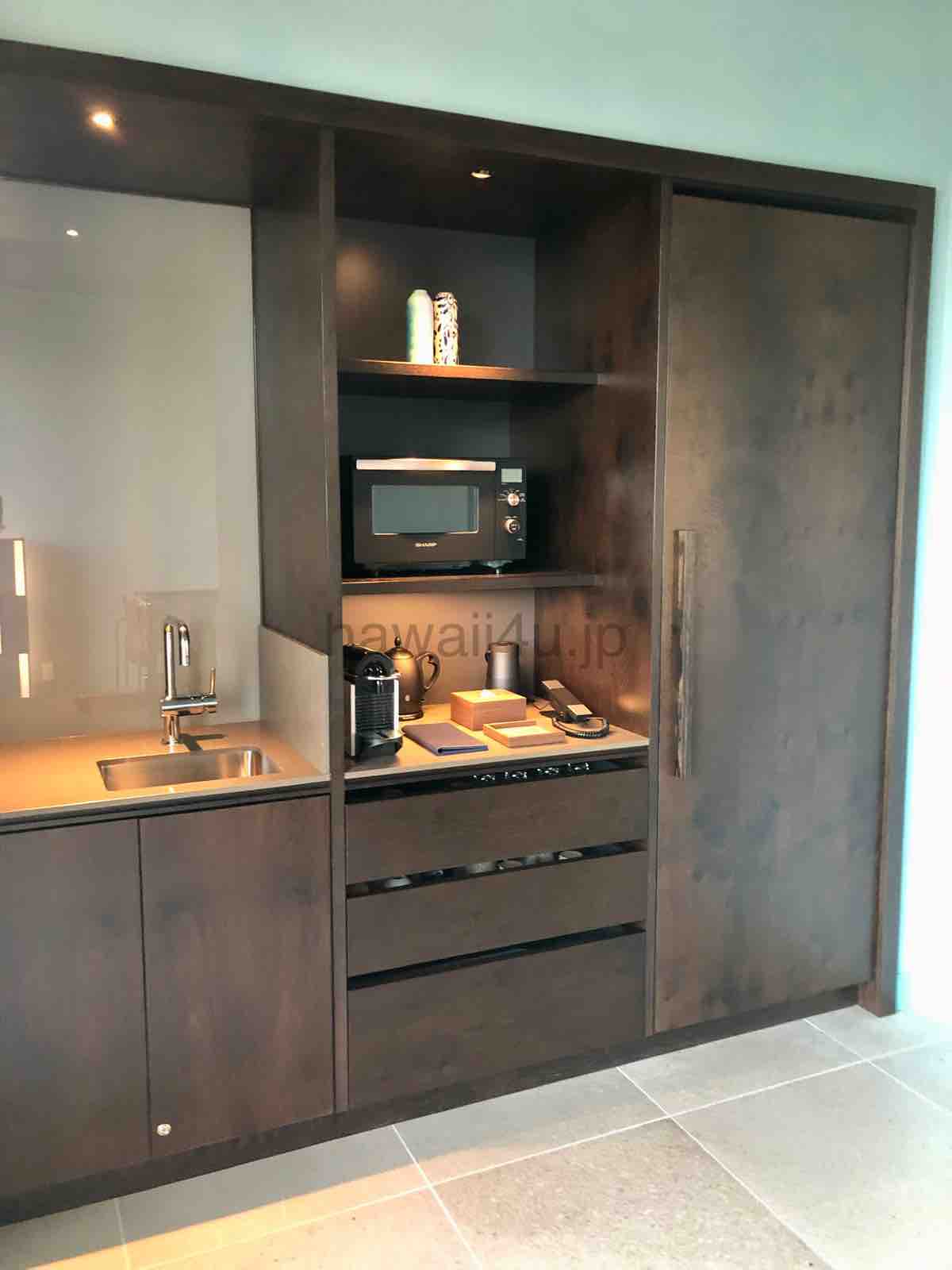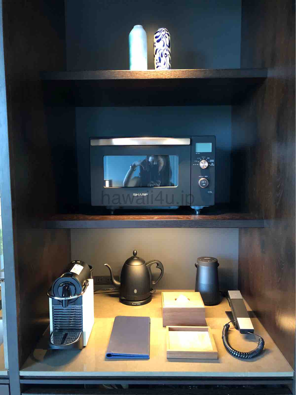 電子レンジ、コーヒーメーカー、Bluetooth付きスピーカーがあります。